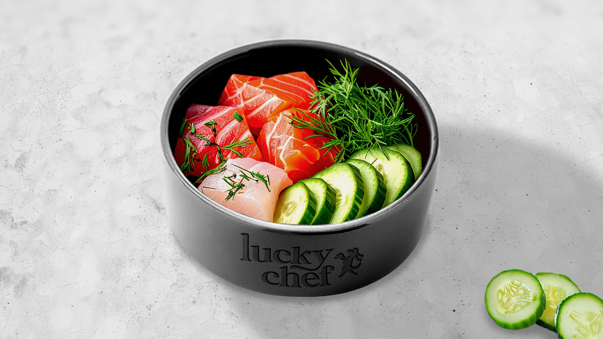 Das Lachsfilet und Kabeljaufilet in kleine Würfel schneiden. Den Dill fein hacken und die Gurke reiben
