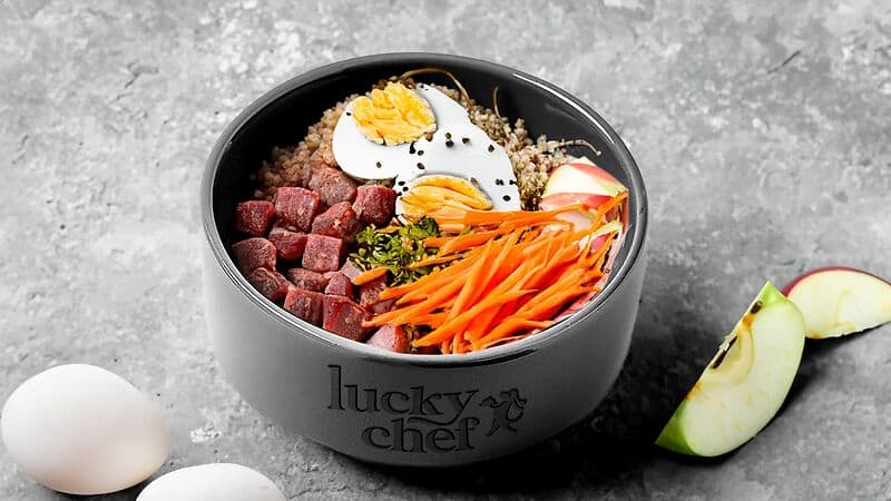 Du wirst bei den Rezeptzutaten für Hundefutter selber kochen auch immer ein LuckyChef Adult Supplement finden, mit dem dein erwachsener Hund alle wichtigen Nährstoffe erhält, die er für eine dauerhafte, bedarfsdeckende Ernährung benötigt. Für euer Probeessen brauchst du die aber nicht unbedingt.